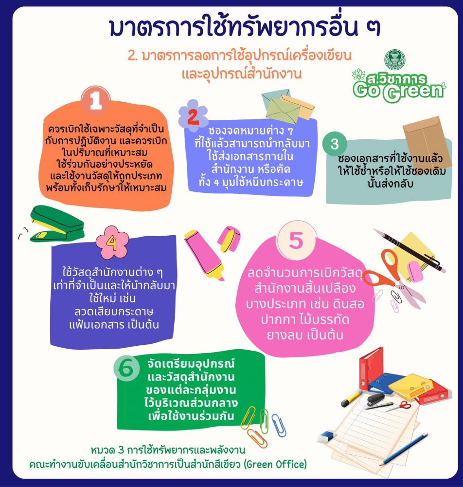 การปฏิบัติงานต่าง ๆ จำเป็นต้องนำทรัพยากรมาใช้ ซึ่งทรัพยากรที่นำมาใช้ในการปฏิบัติงานจะต้องเป็นทรัพยากรที่เหมาะสม สามารถใช้ประโยชน์ได้อย่างคุ้มค่า ดังนั้น จึงควรใช้อย่างเหมาะสม ใช้อย่างประหยัด และใช้อย่างคุ้มค่า เพื่อให้เกิดประโยชน์สูงสุดรวมถึงคำนึงถึงสิ่งแวดล้อม โดยจะต้องไม่ทำลายธรรมชาติและสิ่งแวดล้อม
